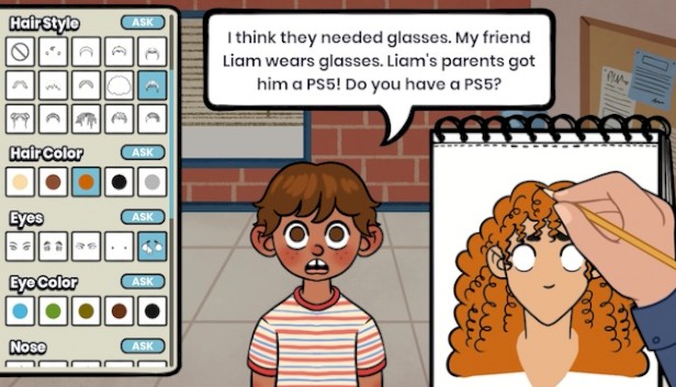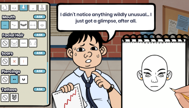 Puzzlespiel, bei dem Zeugen Ihnen Kriminelle beschreiben, Sie diese dann zeichnen und versuchen, sie zu finden.